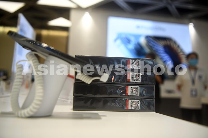 2021年8月6日,海南三亚,手机上加贴的溯源码。