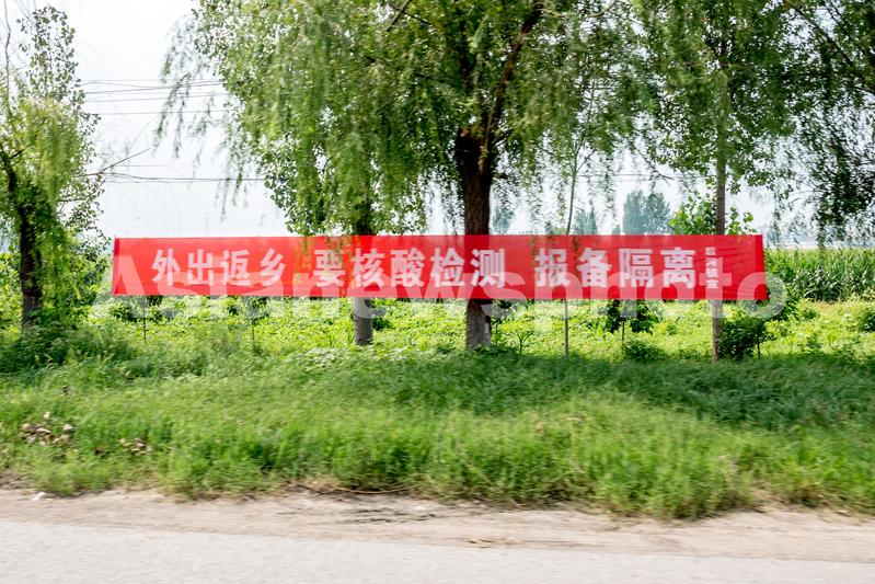 2021年8月8日,河南省新乡卫辉市后河镇路边的疫情防控标语。