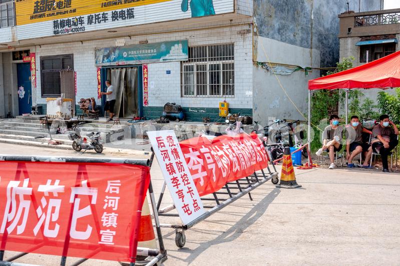 2021年8月8日,河南省新乡卫辉市后河镇李亨屯村口的疫情防控值班卡点。