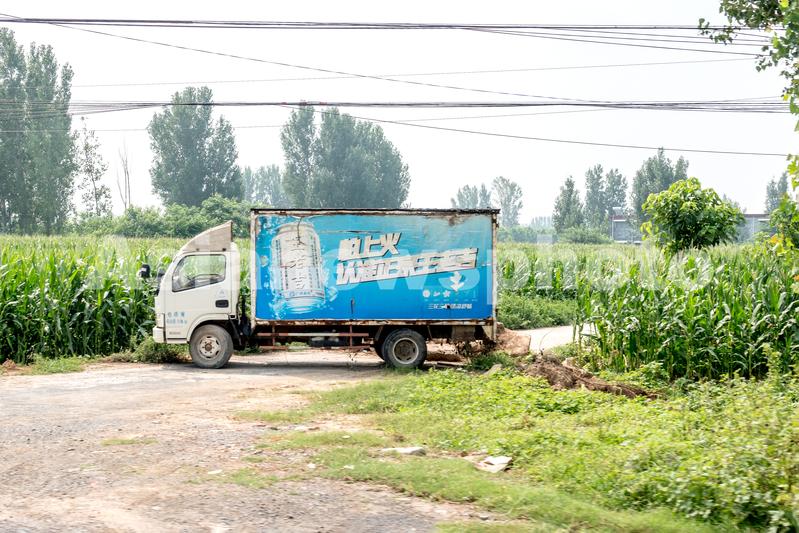2021年8月8日,河南省新乡卫辉市后河镇,一辆卡车横在路上,禁止通行。
