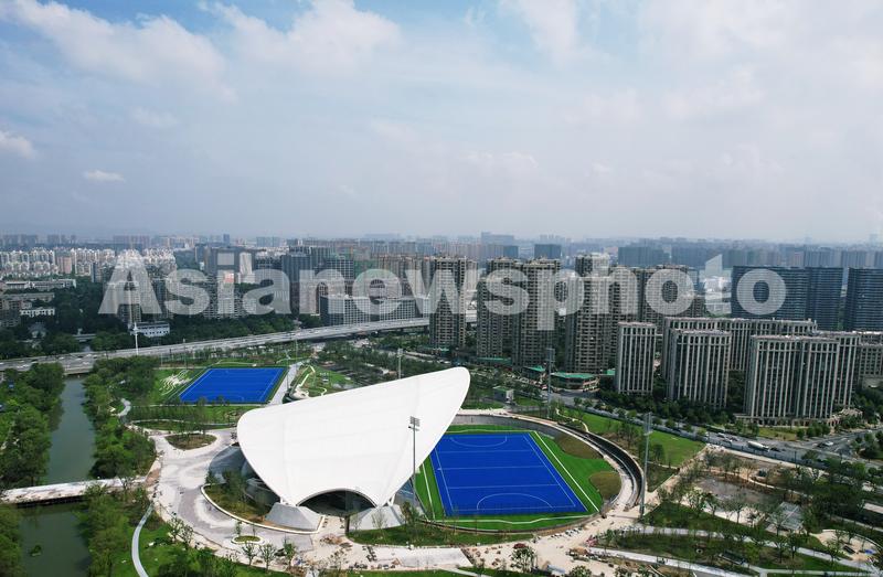 2021年8月19日,从空中俯瞰杭州亚运会曲棍球场。