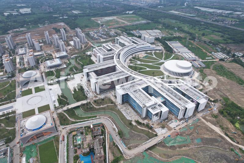 2021年8月18日,杭州,航拍西湖大学云谷校区内标志性的教学科研大楼(学术环)建筑群。