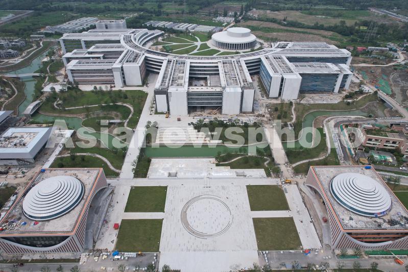 2021年8月18日,杭州,航拍西湖大学云谷校区内标志性的教学科研大楼(学术环)建筑群。