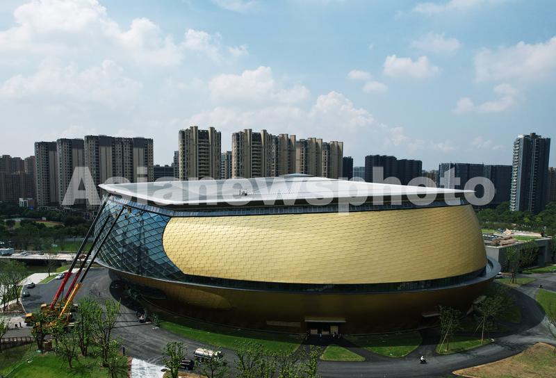 2021年8月22日,从空中俯瞰杭州亚运会乒乓球馆。