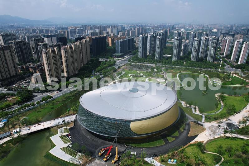 2021年8月22日,从空中俯瞰杭州亚运会乒乓球馆。