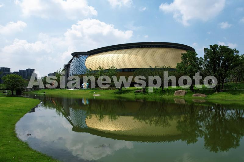 2021年8月22日,从空中俯瞰杭州亚运会乒乓球馆。