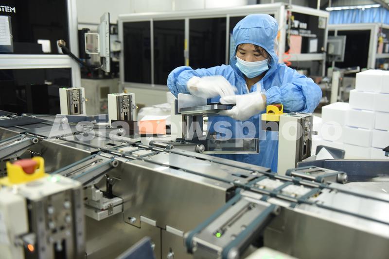 2021年8月25日,江苏省连云港市东海县晶海洋公司员工在车间生产出口订单多功能光伏晶硅片。
