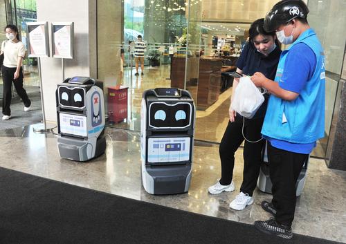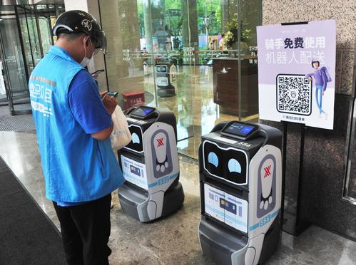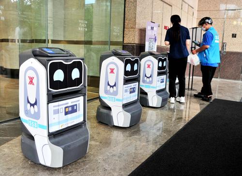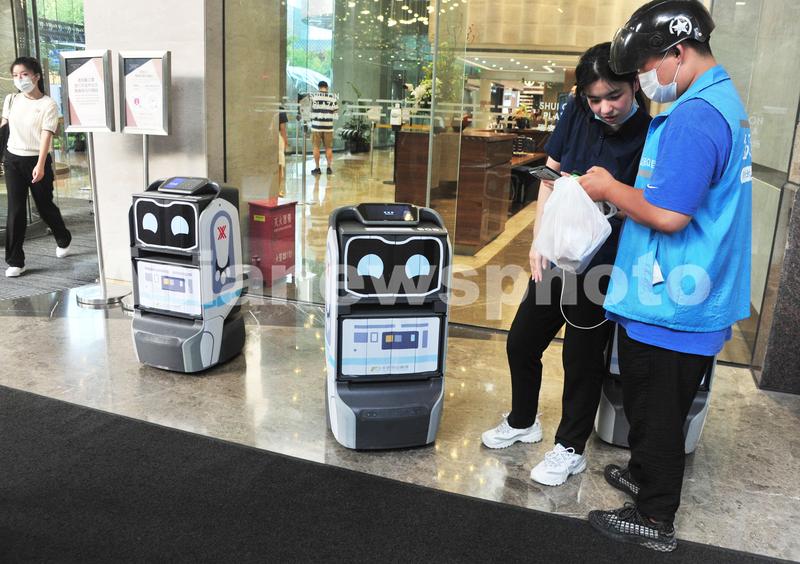 2021年8月23日,上海的一幢商务楼内,一排机器人引人注目。送外卖的小哥只需扫描智能机器人的二维码,将餐品袋放入机器人箱内,数据平台就会将信息发送至收件人手机,并通知收件人到所在楼层的指定地点等候机器人送餐,输入取件码取出外卖。据了解,该智能机器人一次可配送4单,具有自主搭乘电梯、排队过闸机、转弯减速、动态避障行人、密码安全取件等功能。