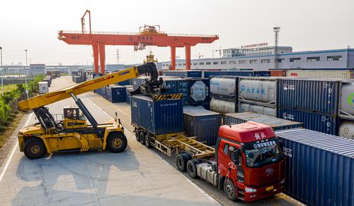 今年1至7月份,中国铁路上海局集团有限公司海安铁路物流基地共完成货物到发量829191.29吨。随着江苏海安至东盟十国的国际货运班列以及沪苏通海铁联运班列的稳定运营,苏中苏北地区越来越多的企业“走出去”,当地铁路物流呈现出越趋繁忙的景象。