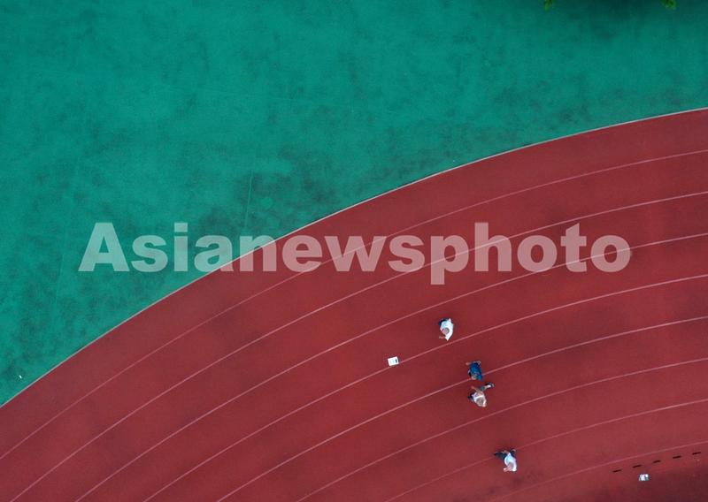 2021年9月1日傍晚,市民在安徽省巢湖市体育场内进行体育锻炼。