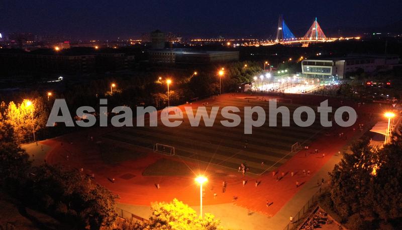 2021年8月31日晚,市民在安徽省巢湖市体育场灯光球场内打球。