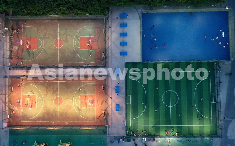 2021年8月31日晚,市民在安徽省巢湖市体育场灯光球场内打球。