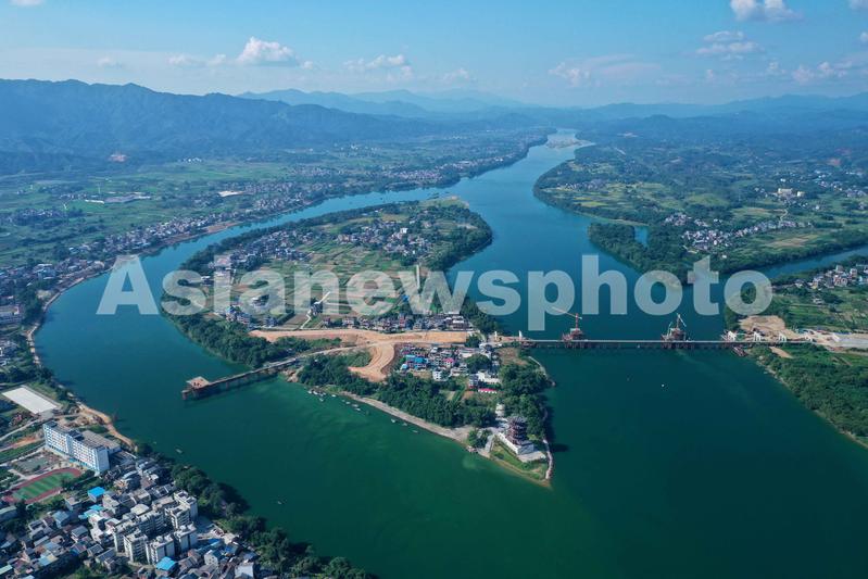 图片说明:9月1日,用无人机航拍的珠江上游融江广西柳州市融安县城段景色。