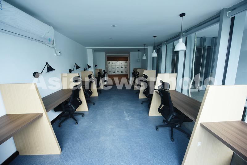 2021年9月1日, 杭州宁巢明石公寓的共享阅读区。