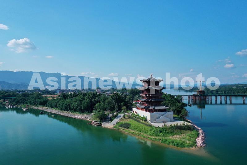 图片说明:9月1日,用无人机航拍的珠江上游融江广西柳州市融安县城段景色。