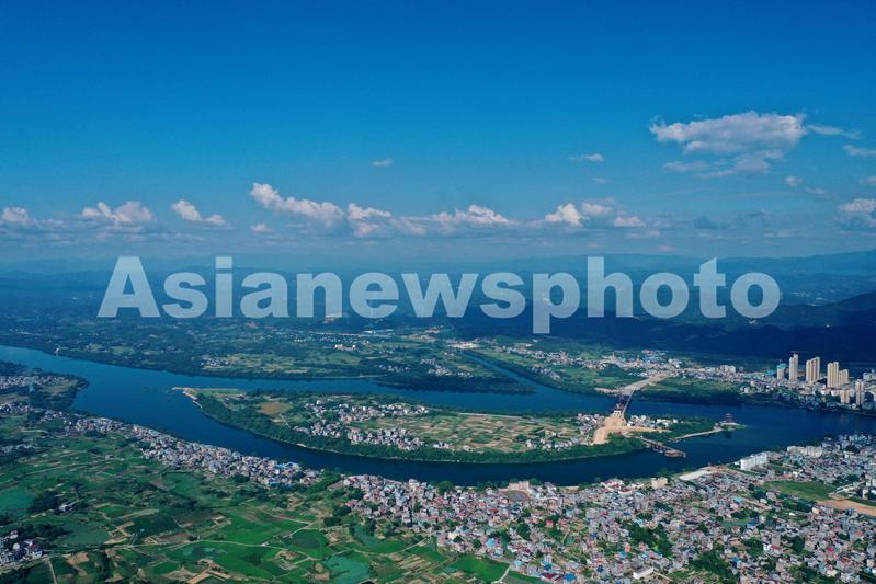图片说明:9月1日,用无人机航拍的珠江上游融江广西柳州市融安县城段景色。