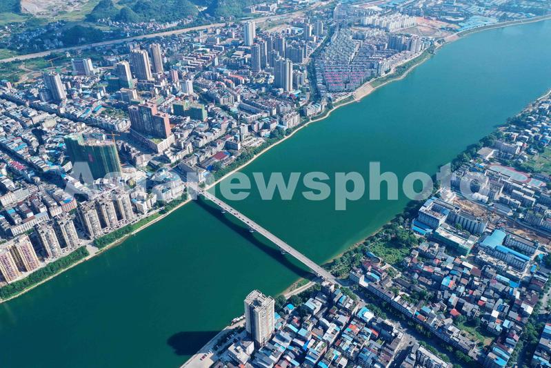 图片说明:9月1日,用无人机航拍的珠江上游融江广西柳州市融安县城段景色。
