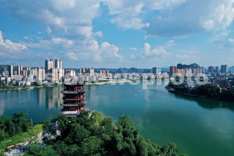 图片说明:9月1日,用无人机航拍的珠江上游融江广西柳州市融安县城段美景。