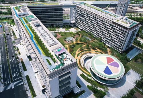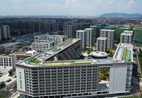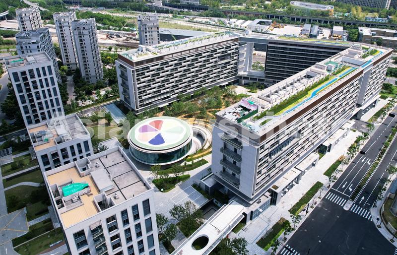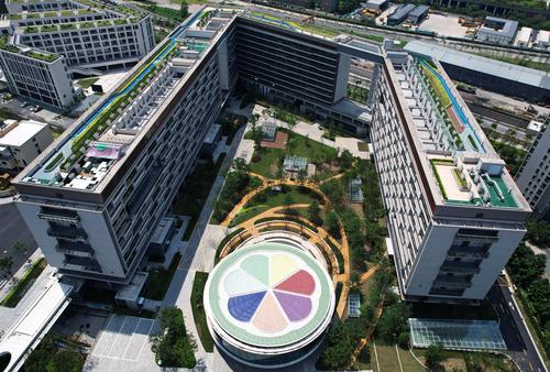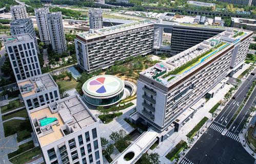 2021年9月1日,从空中俯瞰杭州宁巢明石公寓。浙江省首宗“只租不售”地块的人才公寓项目-宁巢明石公寓即将投入使用,届时将向在杭州发展各类人才提供40、60、90平方米三种不同户型合计1400多套房源。
