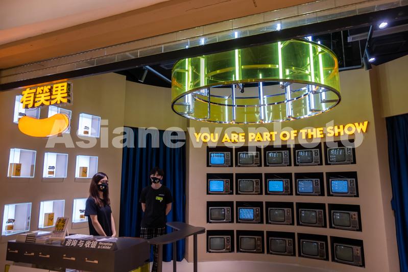 图片说明:2021年9月3日,上海静安大悦城内,脱口秀笑果文化“有笑果”快闪展览现场。