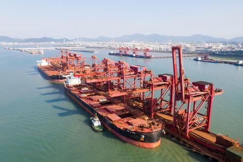 浙江宁波舟山港北仑矿石码头8月份铁矿石生产创新高 查看组图