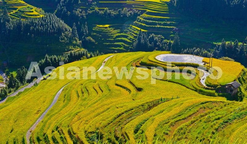 图片说明:2021年9月3日,在贵州省黔东南苗族侗族自治州从江县加榜乡平引加车村拍摄的梯田风光。