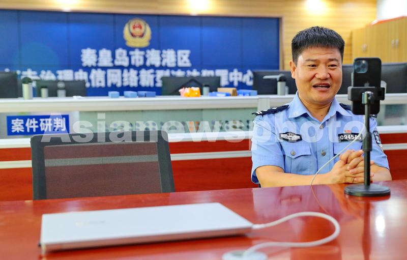 2021年9月5日,河北省秦皇岛市公安局海港分局反诈民警陈国平在直播中。