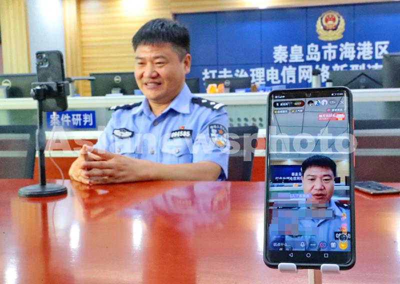 2021年9月5日,河北省秦皇岛市公安局海港分局反诈民警陈国平在直播中。