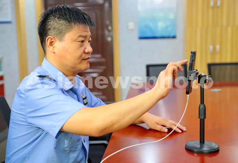 2021年9月5日,河北省秦皇岛市公安局海港分局反诈民警陈国平准备直播。