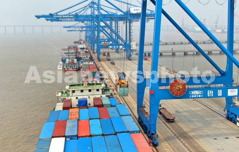 2021年9月6日,江苏南通港通海港区集装箱码头、堆场一片繁忙。
