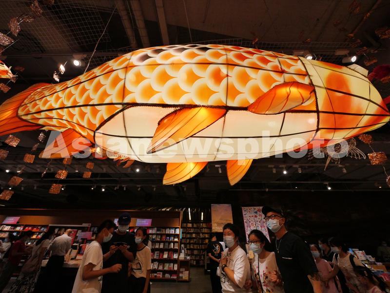 2021年9月11日,广东广州,2021年尚天河文化季精品活动“鱼龙舞”非遗作品展,本次展览的作品采用佛山传统扎作工艺制作而成,加上传统彩灯艺术,其中的竹篾鱼更是以纯骨架形式展示,非常有穿透力。
