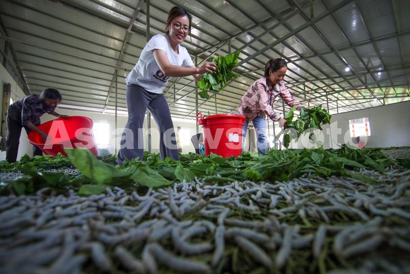 图片说明:2021年9月10日,在贵州省黔东南苗族侗族自治州岑巩县天星乡力元村,村民在蚕房给“蚕宝宝”投喂桑叶。