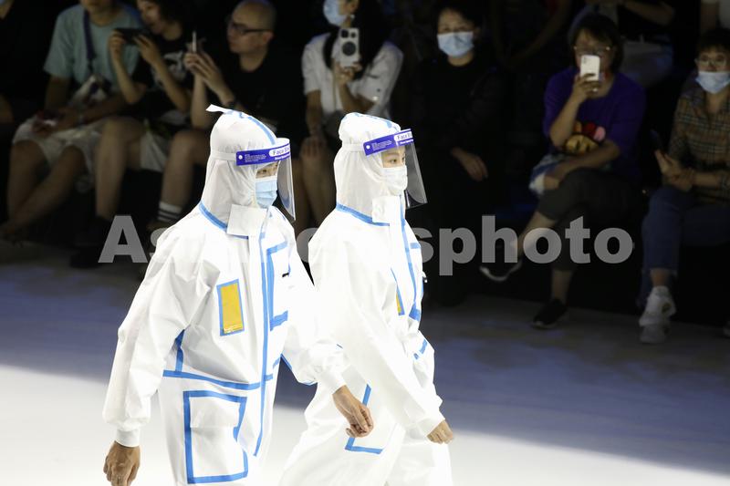 9月11日,模特在展示最新设计的医护主题服装。