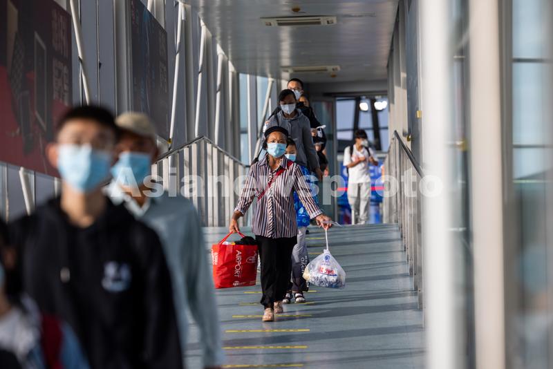 9月16日,扬州泰州国际机场复航后首个离港航班的旅客。
