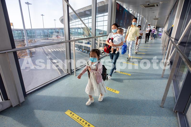 9月16日,扬州泰州国际机场复航后首个离港航班的旅客。