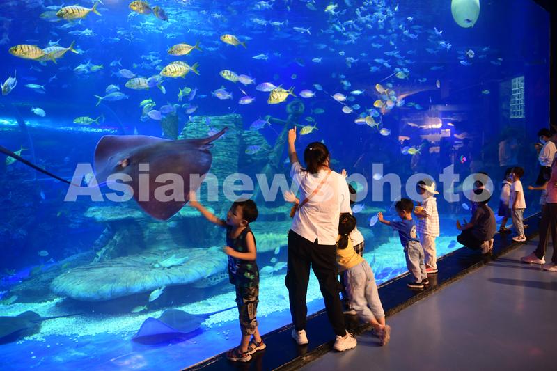 2021年9月19日,游客在安徽省阜阳尧泰汉海海洋公园内游玩。