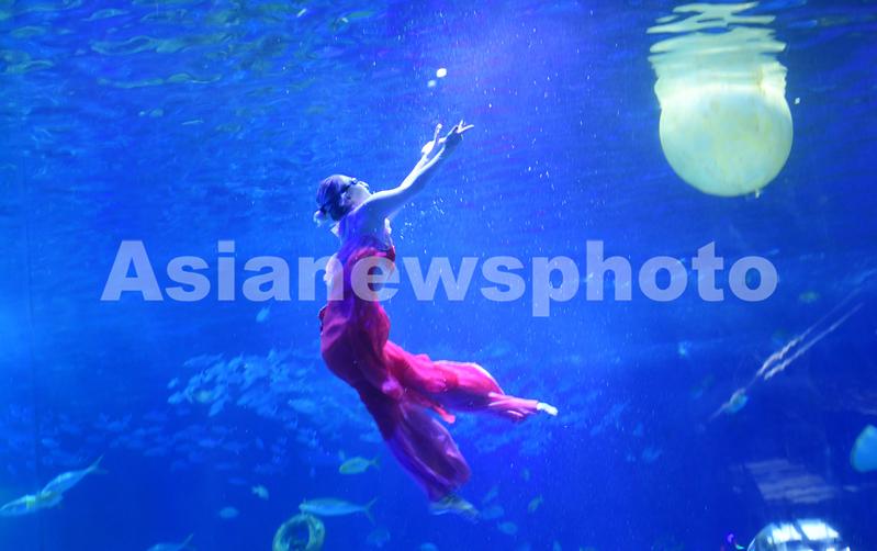 中秋假期里,安徽省阜阳尧泰汉海海洋公园里上演水下芭蕾“嫦娥奔月”,吸引许多游客前来观看。同时,该海海洋公园还推出了“海豚表演秀”、“科普一日游”等一些列海洋主题活动,吸引许多游客进园游玩,在中秋假期中充分享受旅游快乐。