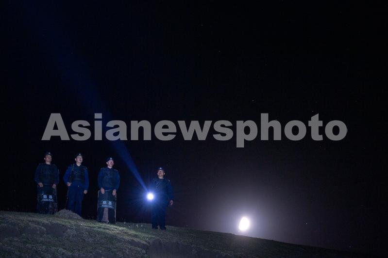 图片说明:2021年9月18日,图为新疆伊犁边境管理支队切特阿克苏边境警务站的民辅警组成夜间巡逻小分队正在对前沿阵地进行检查,确保节日期间边境安全稳定。