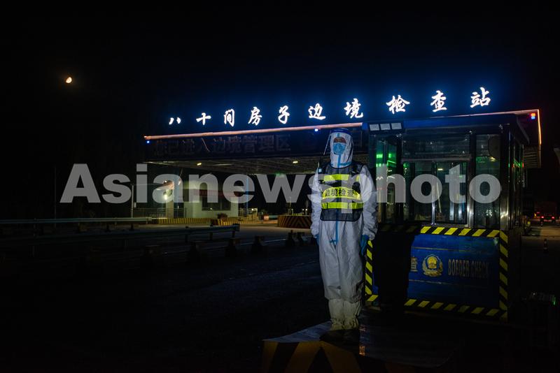 图片说明:2021年9月18日,新疆伊犁边境管理支队八十间房子边境检查站的民警坚守岗位,确保节日期间边境安全稳定。