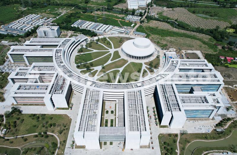 图片说明:2021年9月22日,从空中俯瞰的西湖大学新校区已建成的“学术环”。