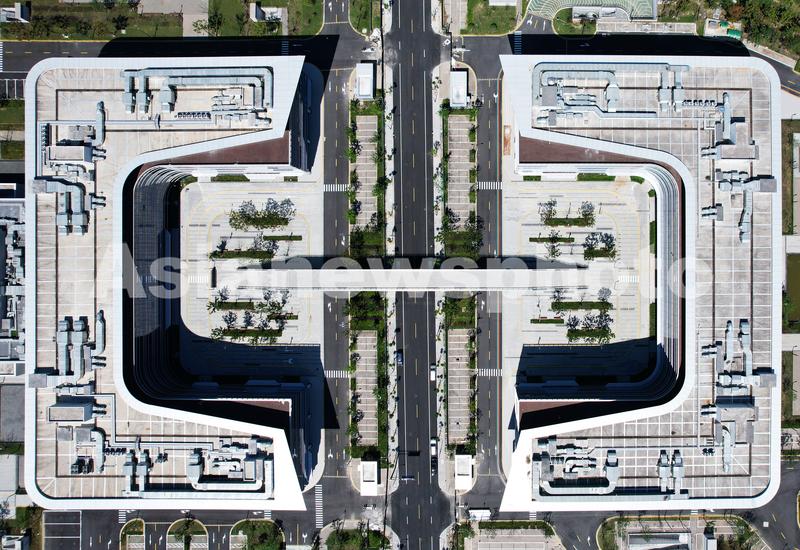 2021年9月23日,从空中俯瞰位于杭州西湖区的阿里云计算公司总部。近日,作为亚洲最大云计算总部的阿里云计算公司总部完工,将于近期正式交付投入使用。