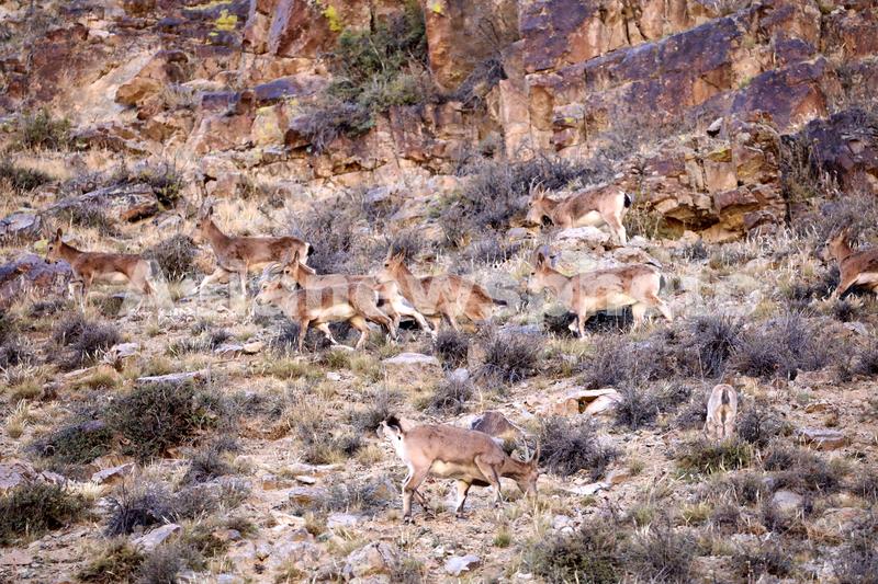 2021年9月22日,一群国家二级保护动物北山羊在新疆温泉县境内的别珍套山上游走。别珍套山是北山羊的主要栖息地,由于当地政府保护得当,北山羊的数量大增,保护级别也从国家一级降为二级。当天,约有30多只北山羊在山涧觅食。