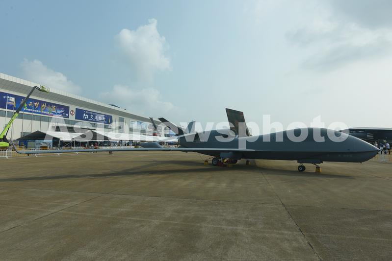 图片说明:2021年9月29日,在珠海举办的中国航展上拍摄到的大型无人侦察机“无侦-7”。