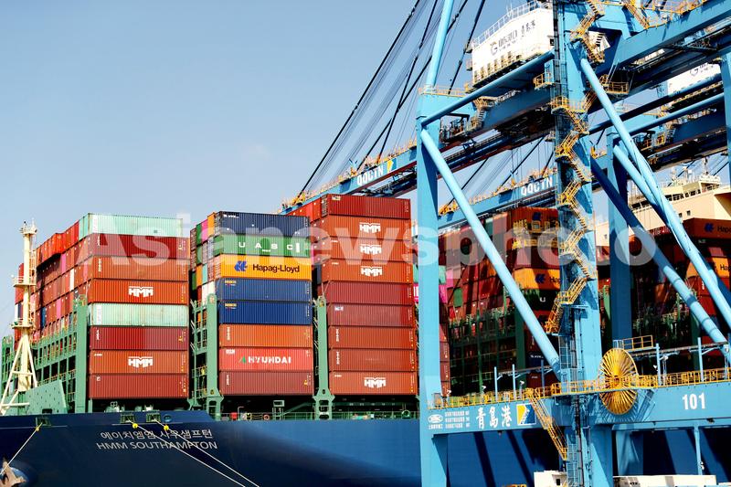 图片说明:9月29日,位于山东自贸区青岛片区的山东港口青岛港全自动化码头,一艘外轮在装载货物。