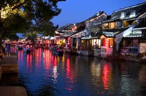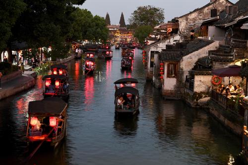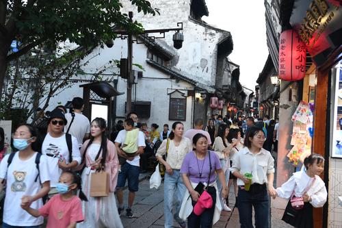 2021年10月2日,国庆长假第二天,浆声灯影下的浙江省嘉兴市水乡古镇西塘游人如织。