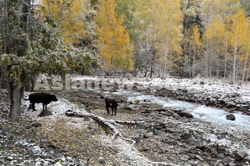 2021年10月6日,新疆博尔塔拉蒙古自治州境内的国家森林公园哈日图热格迎来了一场雪。公园内的群山、河流、白桦树、松树、杨林等树木瞬间披上冬装,绿的、黄的、白的、红的色彩,把公园装扮得五彩缤纷,景色十分壮美。哈日图热格国家森林公园位于博乐市西北40公里处,阿拉套山南坡峡谷中,海拔1350米,由南部谷口向北,蜿蜒曲折纵深20公里。(“哈日图热格”意为“黑雕出没的地方”。)