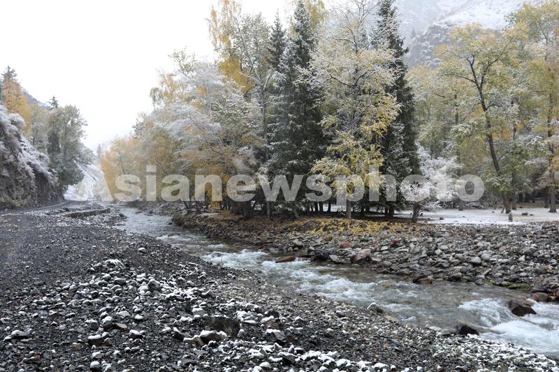2021年10月6日,新疆博尔塔拉蒙古自治州境内的国家森林公园哈日图热格迎来了一场雪。