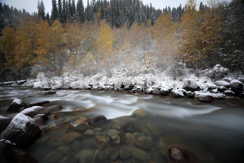 2021年10月6日,新疆博尔塔拉蒙古自治州境内的国家森林公园哈日图热格迎来了一场雪。公园内的群山、河流、白桦树、松树、杨林等树木瞬间披上冬装,绿的、黄的、白的、红的色彩,把公园装扮得五彩缤纷,景色十分壮美。哈日图热格国家森林公园位于博乐市西北40公里处,阿拉套山南坡峡谷中,海拔1350米,由南部谷口向北,蜿蜒曲折纵深20公里。(“哈日图热格”意为“黑雕出没的地方”。)