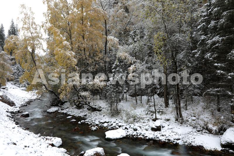 2021年10月6日,新疆博尔塔拉蒙古自治州境内的国家森林公园哈日图热格迎来了一场雪。公园内的群山、河流、白桦树、松树、杨林等树木瞬间披上冬装,绿的、黄的、白的、红的色彩,把公园装扮得五彩缤纷,景色十分壮美。哈日图热格国家森林公园位于博乐市西北40公里处,阿拉套山南坡峡谷中,海拔1350米,由南部谷口向北,蜿蜒曲折纵深20公里。(“哈日图热格”意为“黑雕出没的地方”。)