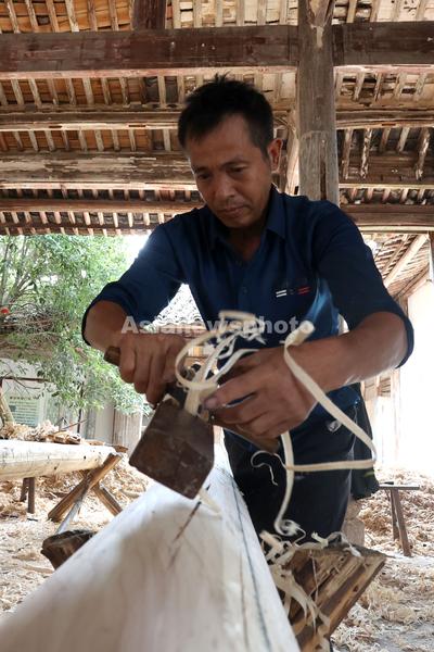 图片说明:2021年10月12日,在江西省抚州市东乡区黎圩镇浯溪村,工匠正忙着修缮古建筑。